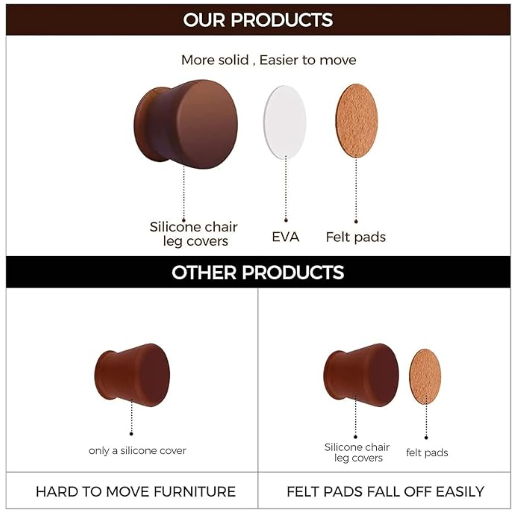 Why it works when everything else fails: Instead of relying on adhesive that loses grip, our high-density silicone cap uses mechanical tension physics to create a permanent, secure fit around any furniture leg shape. Combined with our Molded Felt Technology—where the felt base is permanently integrated into the silicone (not glued on)—you get a solution that's physically impossible to fail the way cheap alternatives do.