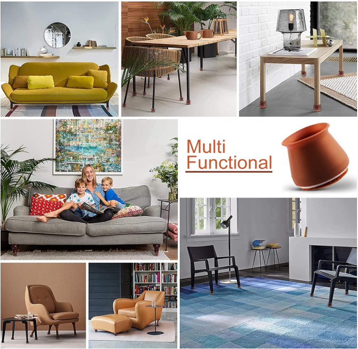 Extra-thick, high-elasticity silicone stretches over square, round, or irregular legs without breaking. One customer said: "I have even removed a couple to reposition—no problems."